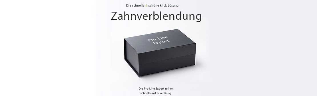 Eine Zahnverblendung Pro-Line Expert ist eine aus Dental-Kunststoff hergestellte kosmetische, sehr dünne Zahnschiene mit mehreren Zähnen und mit künstlichem Zahnfleisch, die an das vordere Gebiss geklebt wird. Es verdeckt so alle sichtbaren Zähne. So sind Zahnlücken, schiefe sowie unschöne Zähne nicht mehr sichtbar.